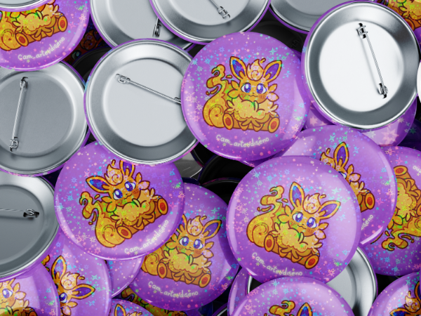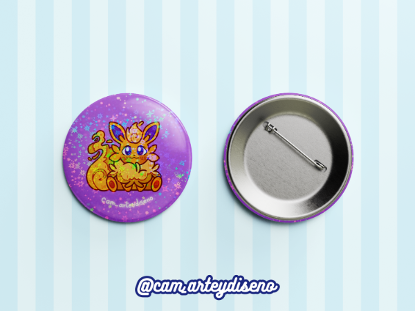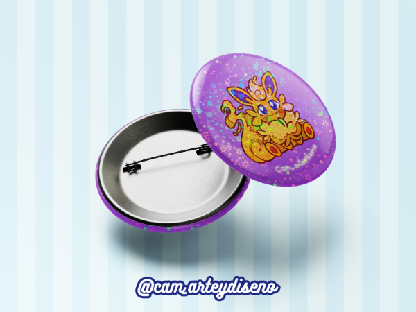 Chapa metálica con alfiler, incluye uno común y uno holográfico